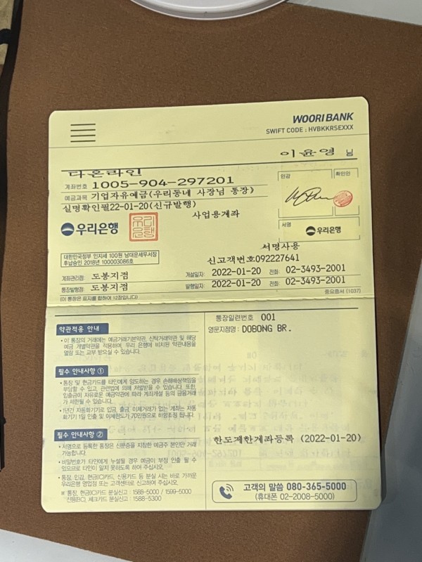 다온라인 사업자 통장 페이지 정보 작성자 다온라인 댓글 댓글 0건 조회Hit 31회 작성일Date 26-01-18 14:54 본문 우리은행 1005-904-297201 다온라인 목록 글쓰기 이전글공사 안내문 양식 26.01.18 다음글다온라인 사업자등록증 26.01.18 댓글 0 댓글목록 등록된 댓글이 없습니다.