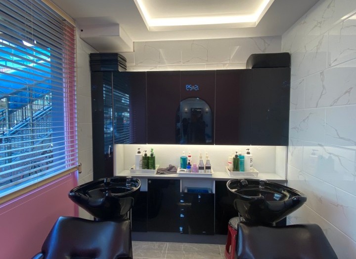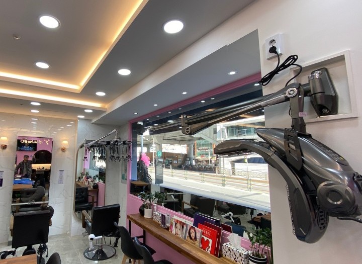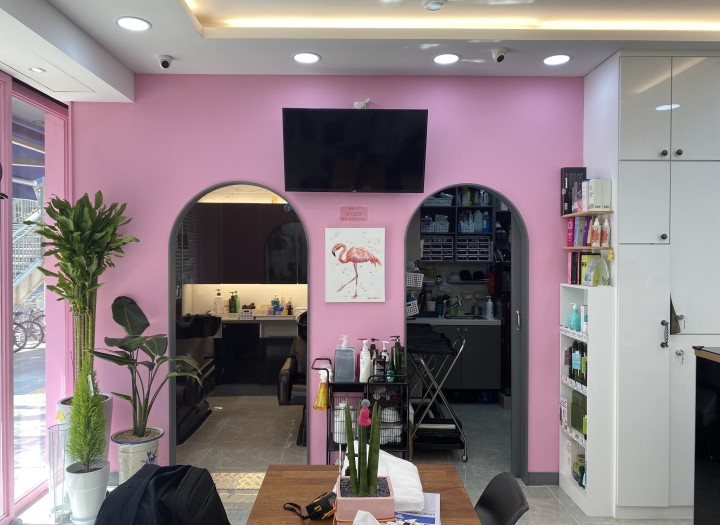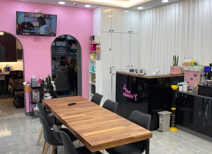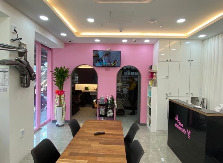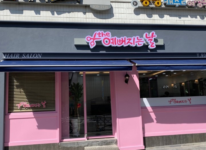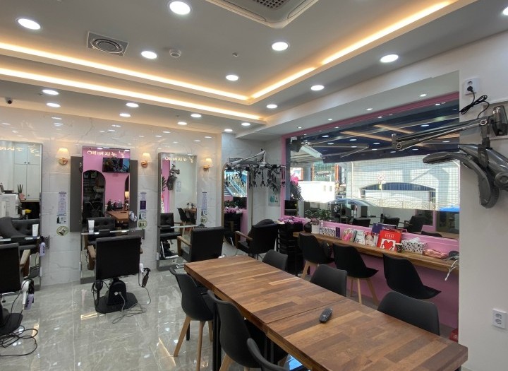 노후된 상가건물에 오랫동안 비워진 가계를 인수해서 오픈하는거라 파격적으로 눈에 띄게끔 화려한 컬러를 사용해서 노출 효과를 극대화한 헤어샵입니다.