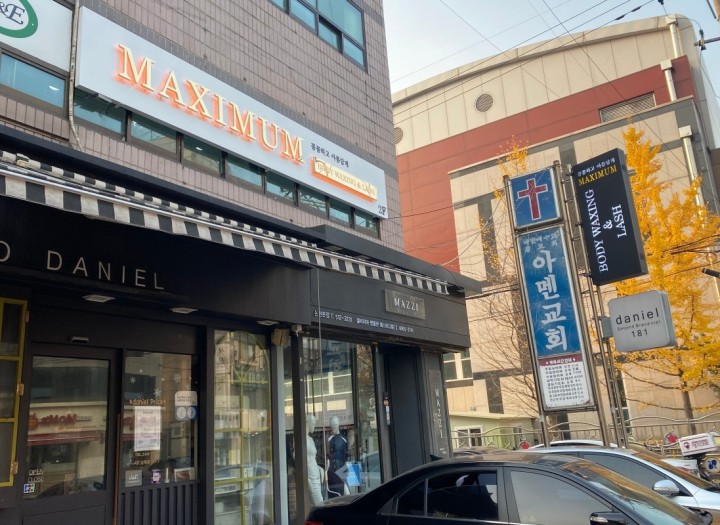 신논현역3번출에서 도보로 5분 정도 속눈썹, 왁싱으로 유명한 맥시멈 왁싱입니다.