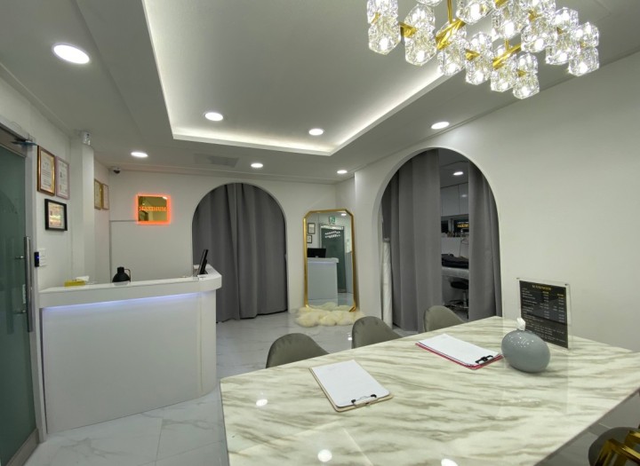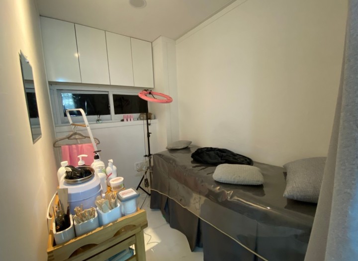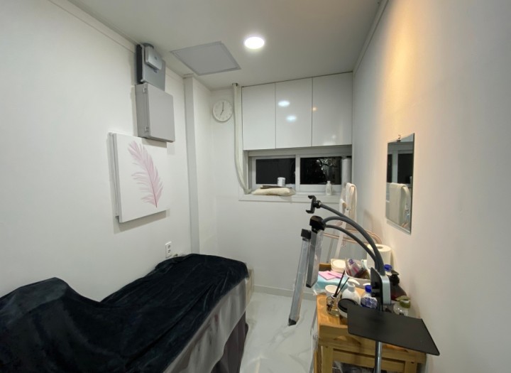 로비와 1인실 왁싱룸 두개, 5인실 피부미용실 1개 규모의 왁싱샾이고 기존 학원으로 사용되었던 공간을 최소한의 비용으로 부분적으로 리모델링 하여 완전하게 탈바꿈 시켰습니다.
