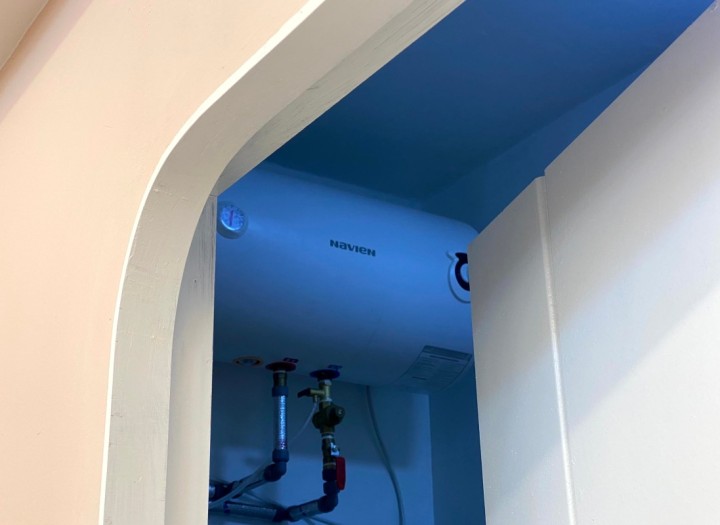 다만 벽상테가 고르지 않아 3면 가벽설치를 하고 간접조명 설치도 했습니다.