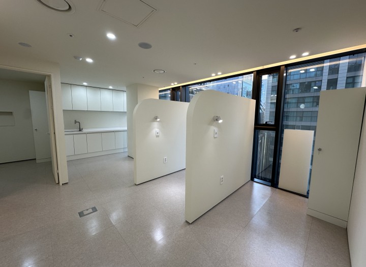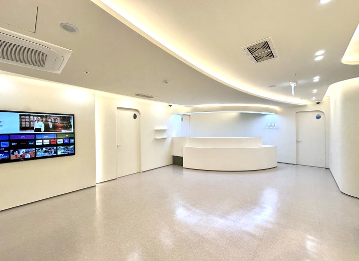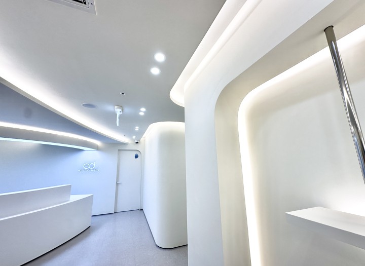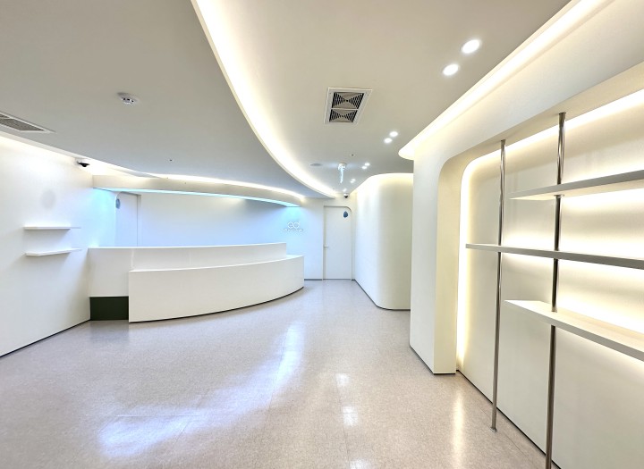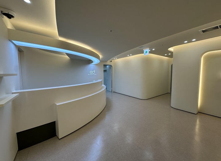 전체적으로 부드러운 곡선과 단순하면서도 깔끔한 느낌을 주기 위해 디자인 했으며 기존의 천정이 낮아 부분적으로 천정의 공간을 확보 하며 우물 천정으로 공간이 넓어 보이게끔 디자인 되었습니다.